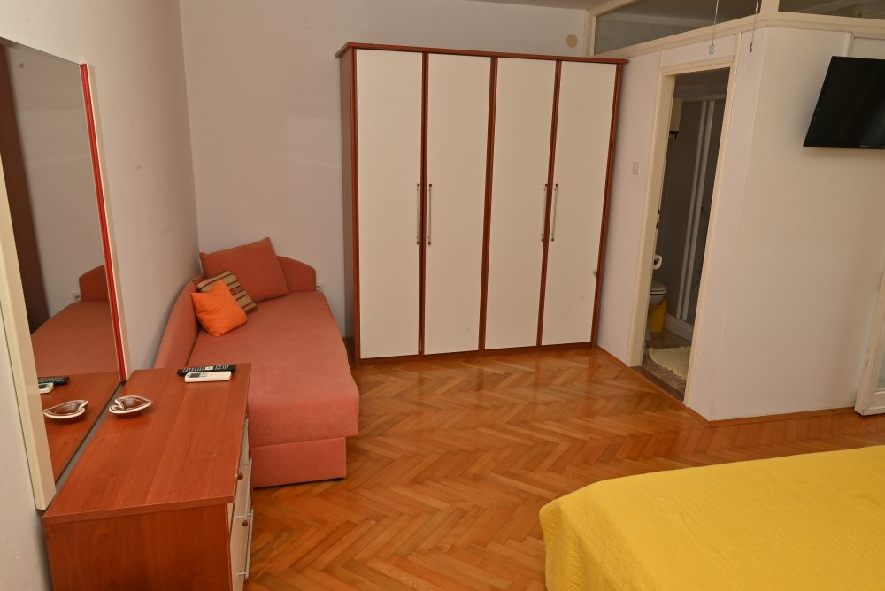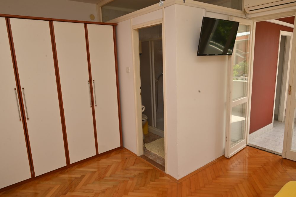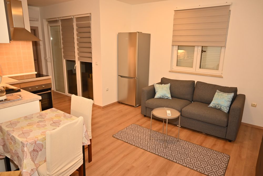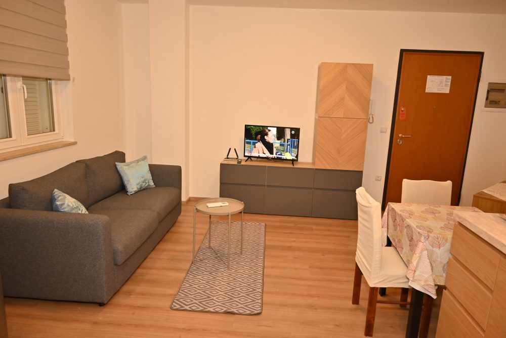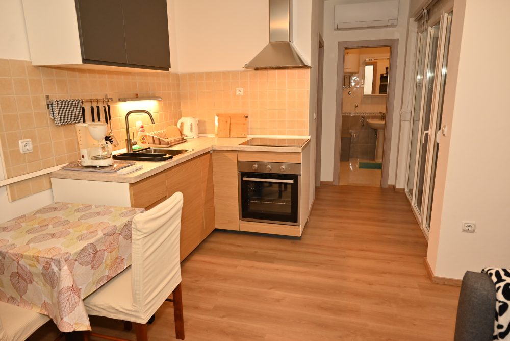 - Amenities: Air conditioner, Balcony, Bathroom, Bedclothes, Coffee maker, Cooking plates, Couch, Cutlery, Free Wi-Fi, Hair dryer, Kettle, Kitchen, Kitchen table, Kitchen utensils, Refrigerator, Seating area, Shower cabin, Sleeping room, Socket next to the bed, Toilet, Toilet paper, Towels, TV, Wardrobe, Wooden or parquet floor